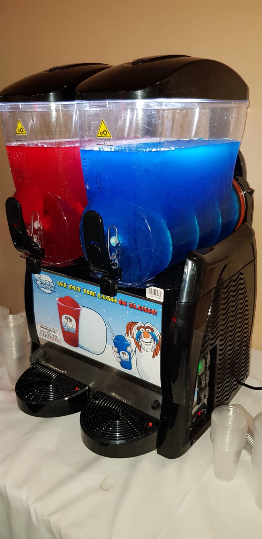 This is our new arrival Slush Machine 12L fast freeze ready for hire for all occasion, this slush machine can make 60 cups out of each bowl which will only take 30 - 45min to freeze in to slush, so you can get 120 off 1 freeze so to maximise more drinks just top this up with more diluted mix so you will never run out.