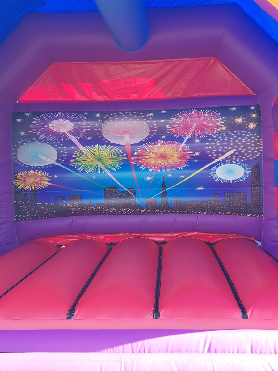 Our Adults Let's Party Bouncy Castle features a big high bounce bed, ensuring that everyone can jump and bounce to their heart's content. The built-in rain cover provides protection from the unpredictable British weather, allowing you to enjoy the castle even on rainy days.