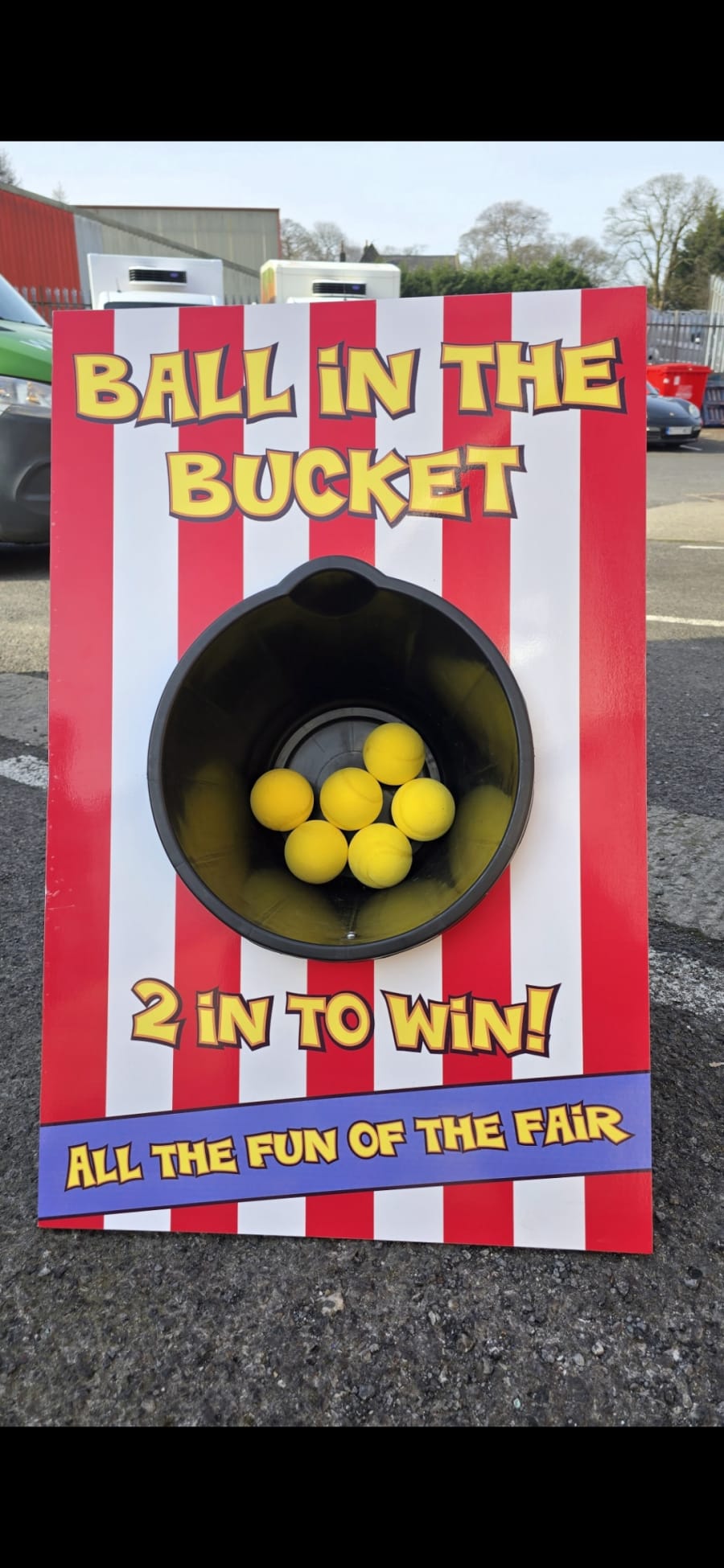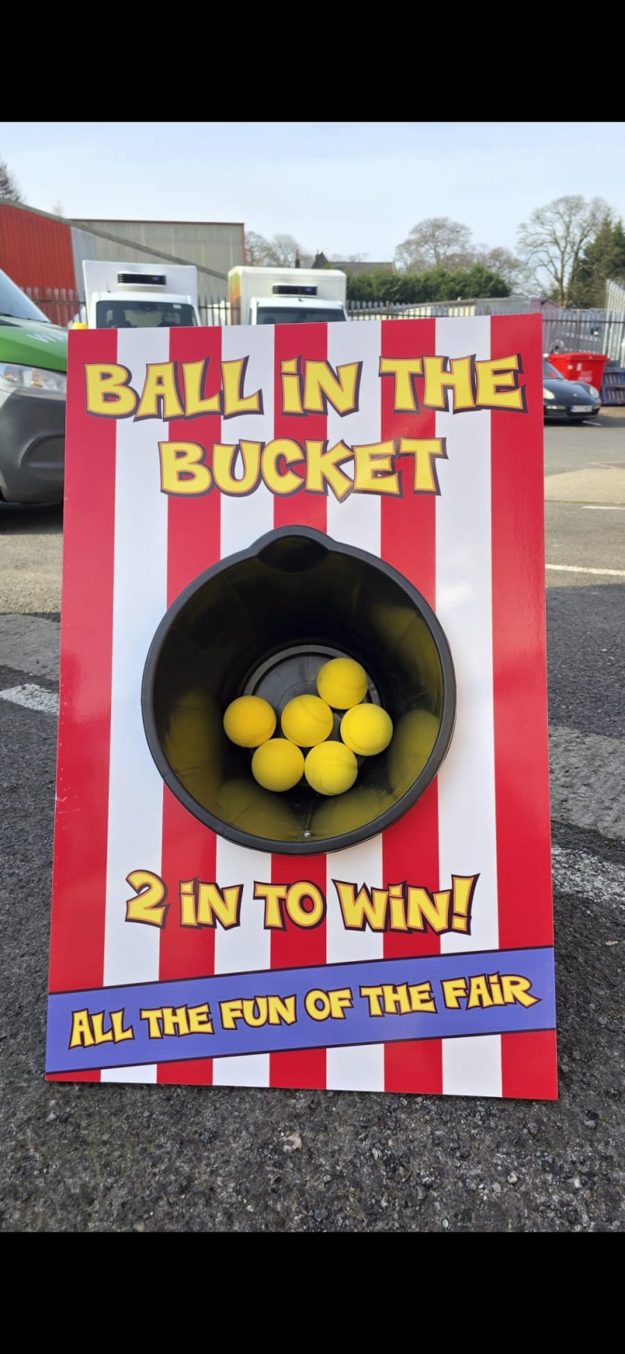 Bring simple, addictive fun to your next event with our Ball In The Bucket (New). A classic fairground challenge with a fresh twist — players must throw 2 balls into the bucket to win a surprise prize. Perfect for school fetes, birthday parties, community events, and private hires, this game is easy to set up, quick to play, and loved by kids and adults alike. 🎉