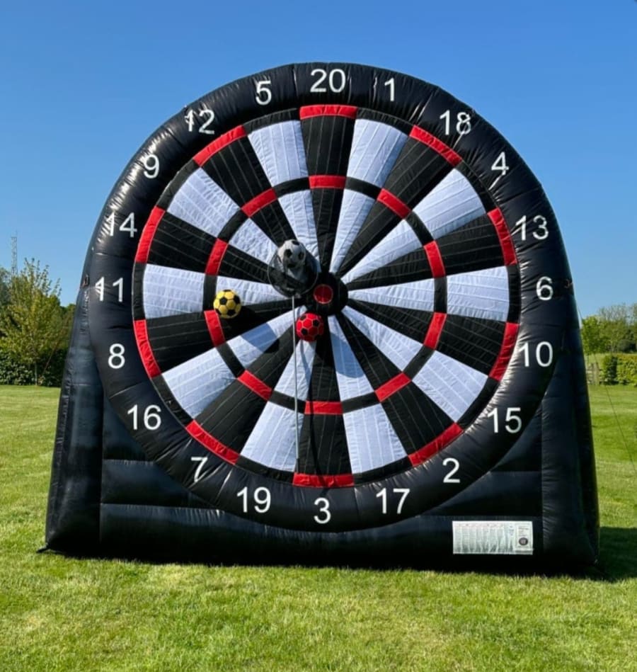 Make your event unforgettable with our 20ft Football Dartboard. ⚽🎯 This eye-catching attraction combines classic darts with football fun. Players kick the velcro ball at the giant target and try to score points. It’s a proven big crowd puller for parties, festivals, and corporate days. Book the Football Dartboard to draw attention, create competition, and keep guests entertained.