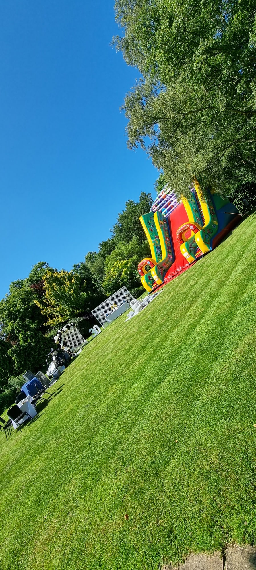 🏰 Setting up the Mega Event Slide requires a wide access were our vehicle can drive up onsite. Our team will ensure a smooth setup process at your party or event. However, please keep in mind that this slide is not suitable for small back gardens. 🌳